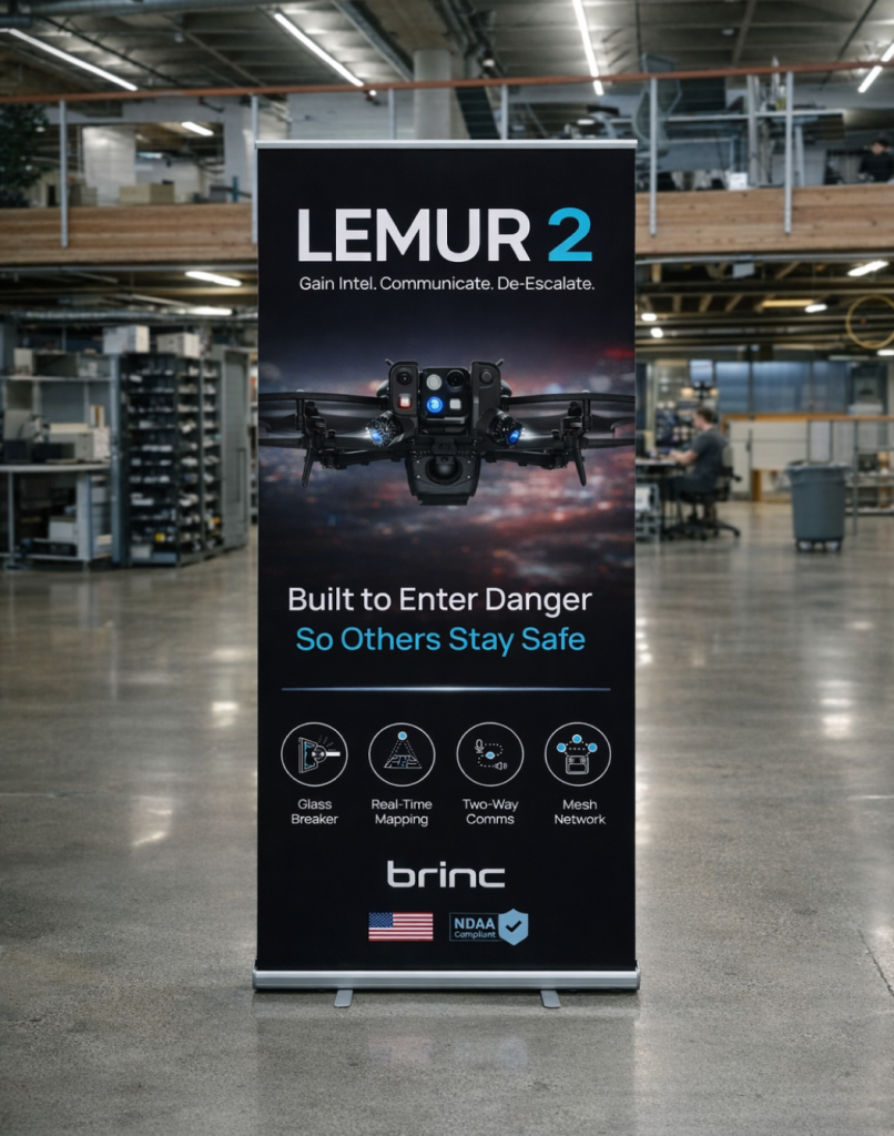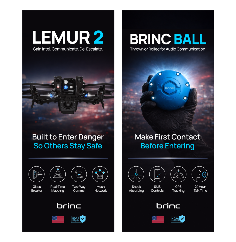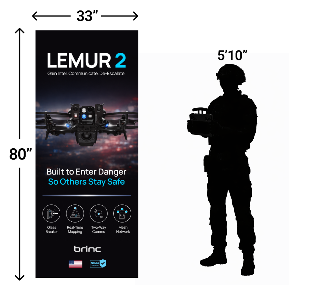 Overview Designed a set of large-format tradeshow banners highlighting BRINC’s Lemur 2 drone and BRINC Ball communication device. The objective was to communicate mission-critical capabilities quickly while maintaining a strong, modern visual presence in crowded exhibition environments. Outcome The banners create a strong visual anchor for the booth, helping attract attention from a distance while clearly communicating each product’s role in tactical and emergency response operations.