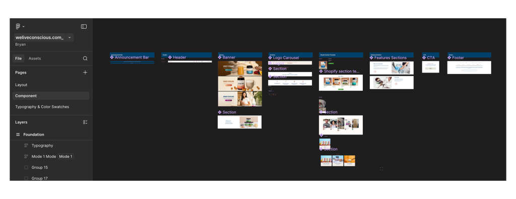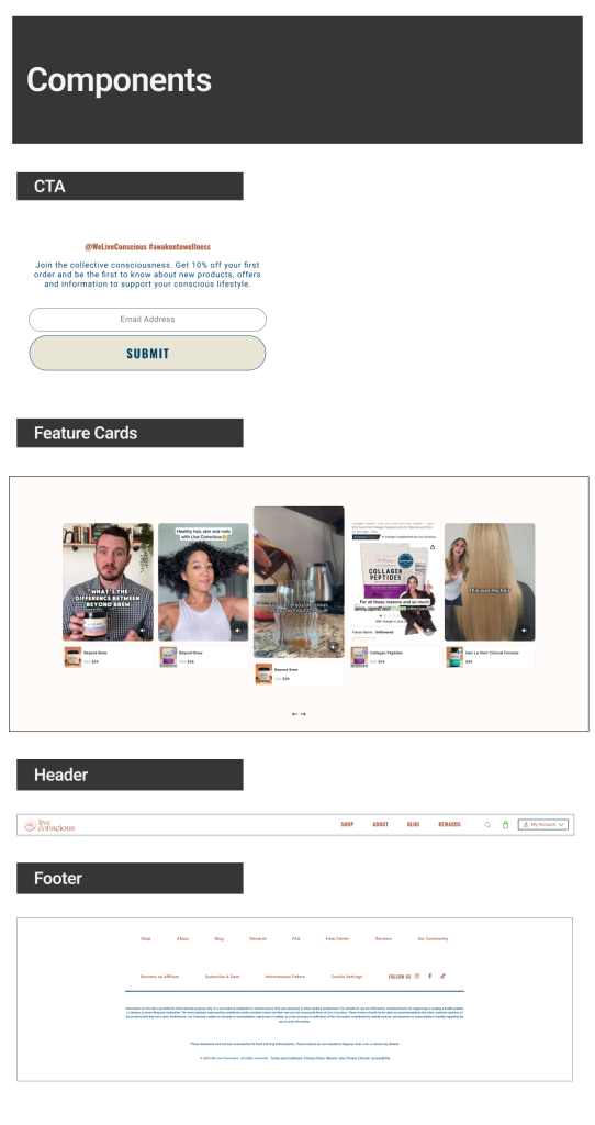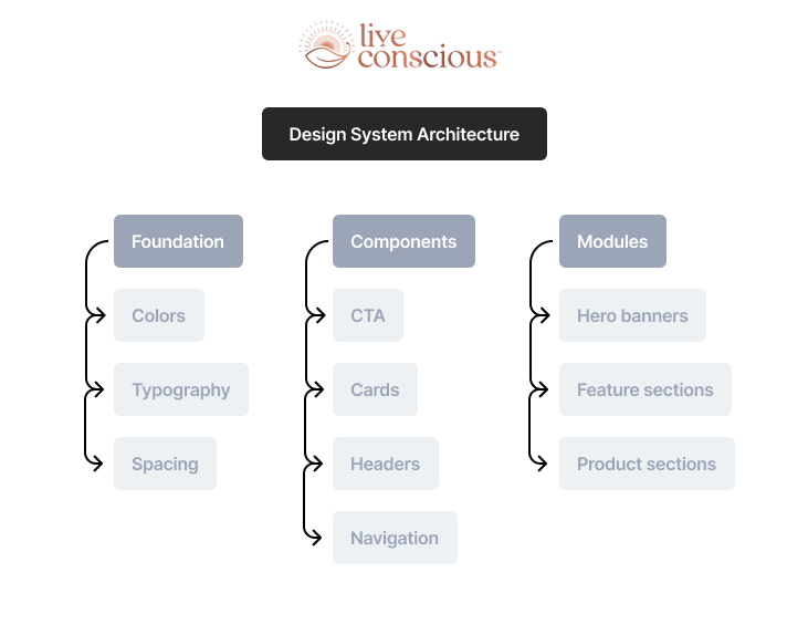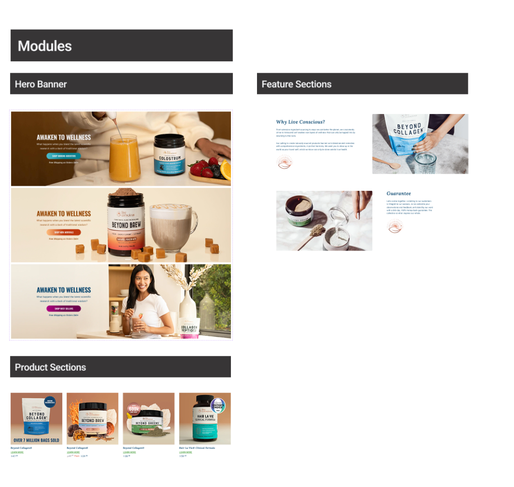 To improve consistency, scalability, and speed across the Live Conscious marketing ecosystem, I developed a modular design system used across landing pages, product pages, and marketing campaigns.